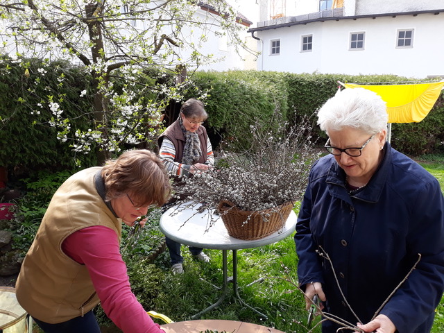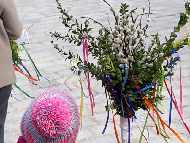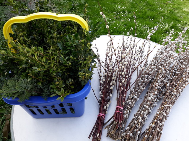 Gegen eine Spende wurden die Palmbüschel an die zahlreichen Gottesdienstbesucher abgegeben. Traditionell bestehen die kleinen Handsträuße aus Palmkätzchen und Buchsbaum, Wacholder oder Eibe.