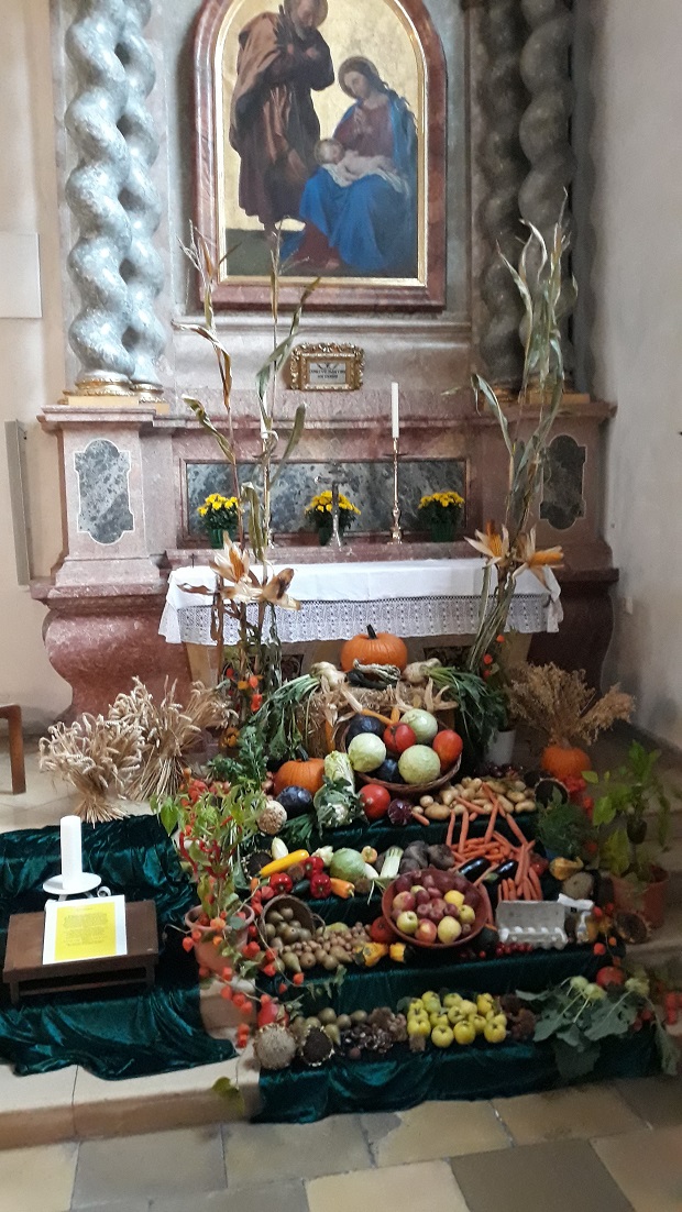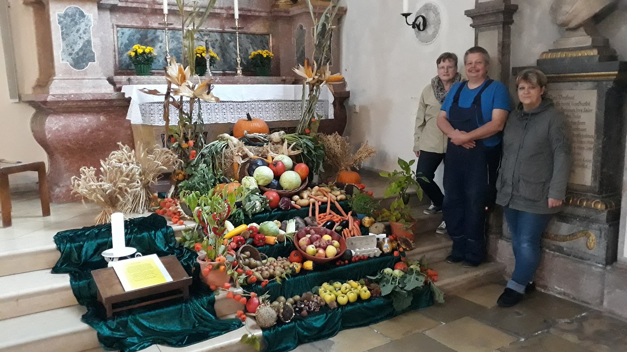 Als Noah die Arche verlassen hatte, gab Gott ein Versprechen: ‚Solange die Erde besteht, soll es immer Saat und Ernte geben‘ (Gen 8,22). Unser Erntedankfest wurde um 1770 von der Kirche als Fortsetzung bäuerlicher Erntefeste aufgegriffen. Seit 1972 ist der 1. Sonntag im Oktober für den Erntedank festgelegt.