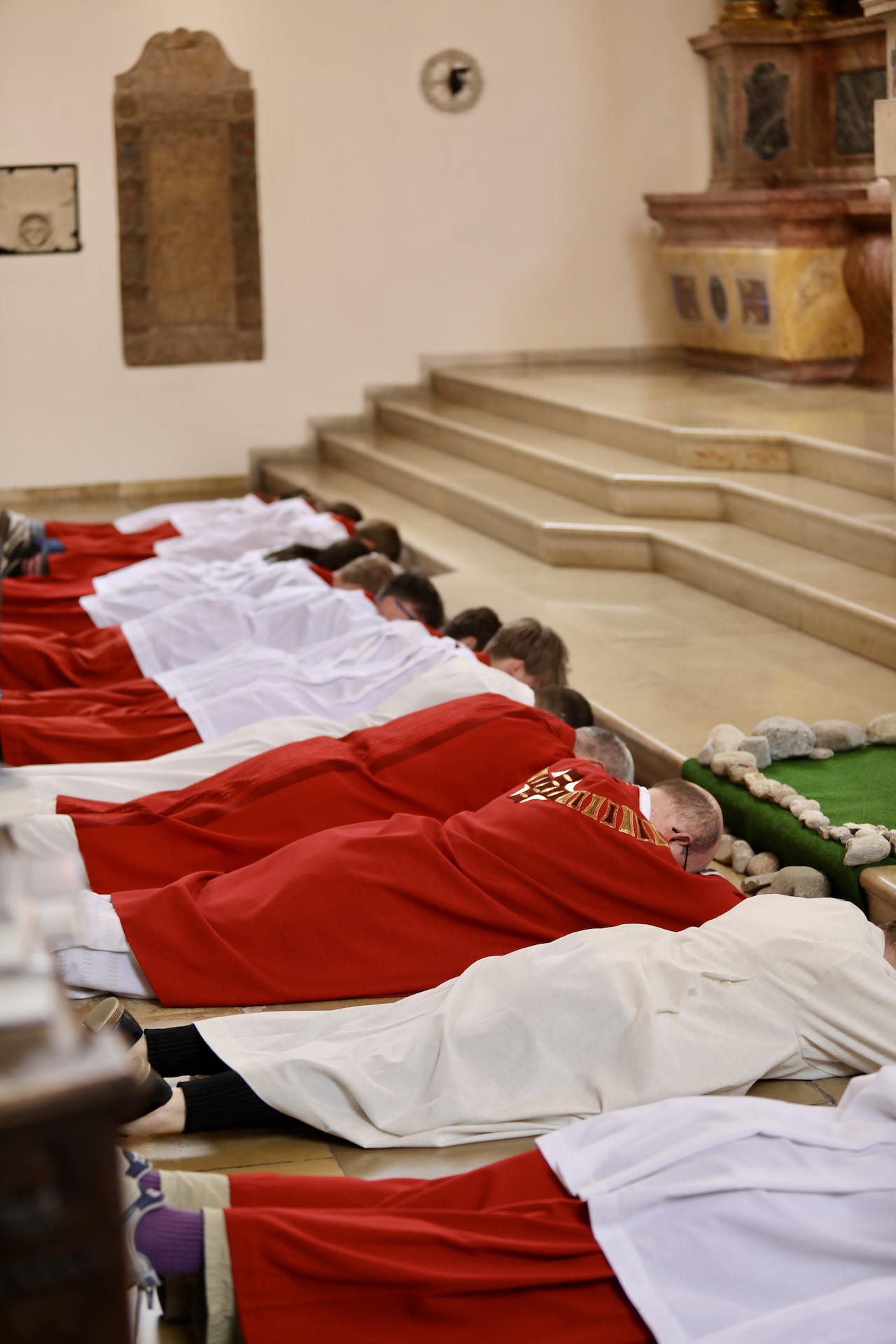 Zu Beginn des Gottesdiensts legte sich das liturgische Team in stiller Ehrfurcht vor dem Altar nieder – ein Zeichen der Trauer und Hingabe.