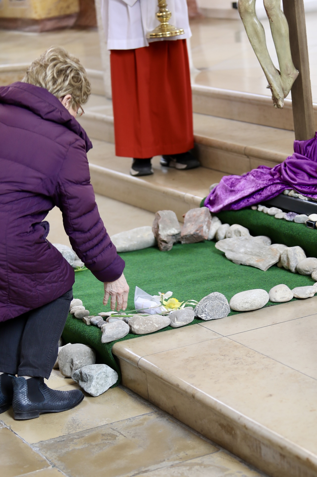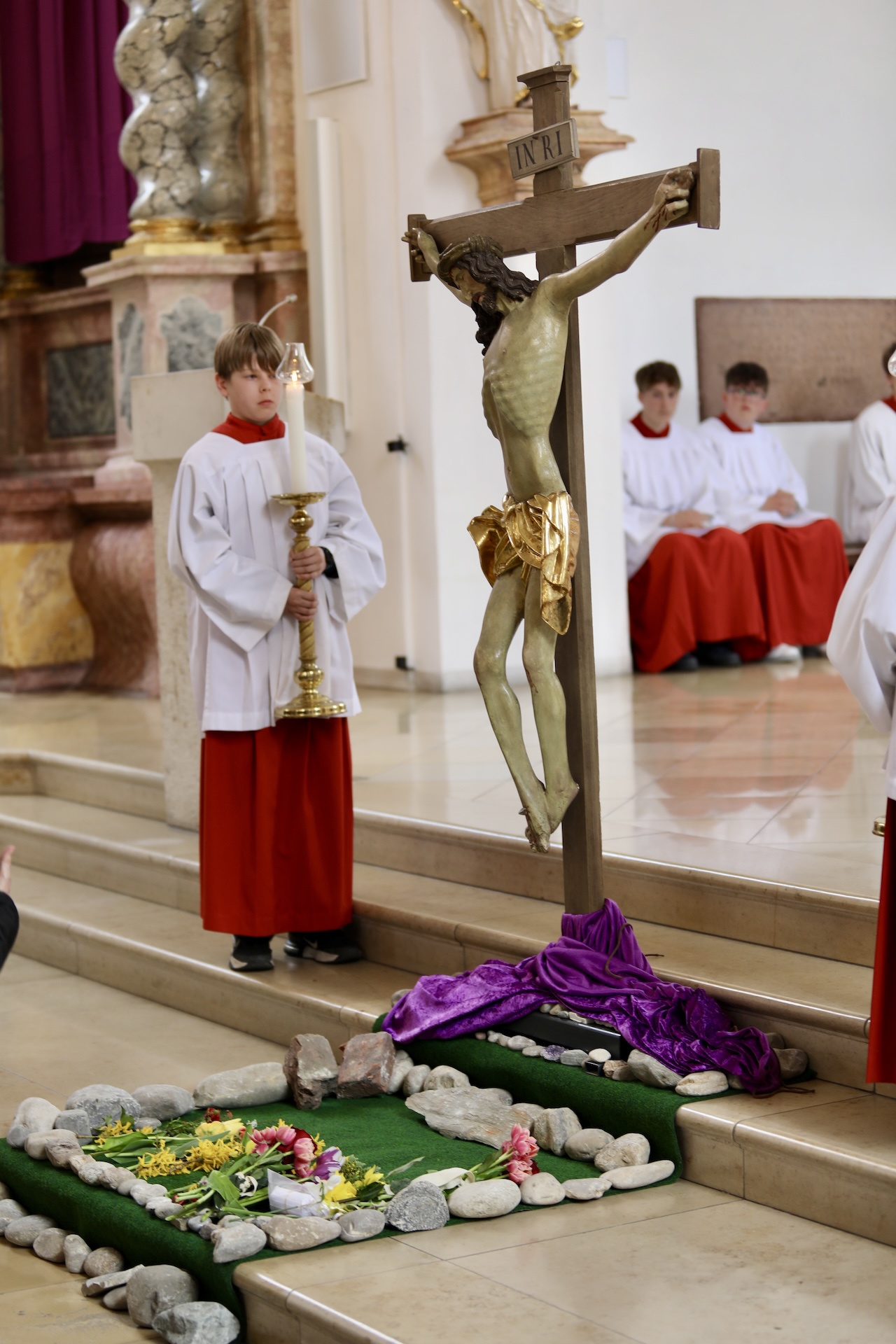 Der Kirchenchor St.Jakob erfüllte den Raum mit bewegender Musik, während die Gemeinde in der Verehrung des Kreuzes den Leidensweg Christi mitging.