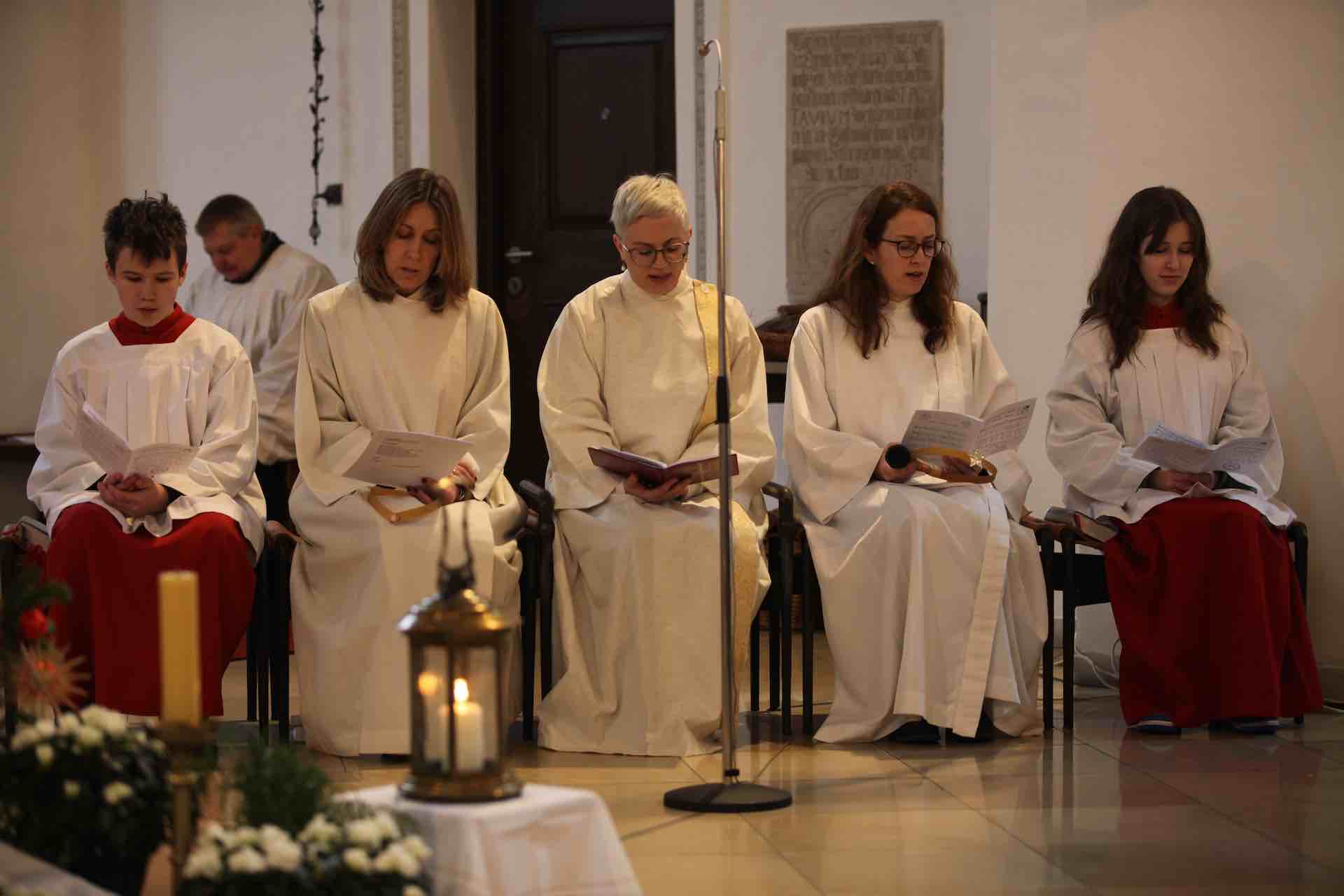 Gemeindereferentin Barbara Niedermeier zelebrierte den sehr stimmungsvollen Einstieg in den Heiligen Abend. Singfreudig zeigte sich der Kinderchor St. Jakob unter Leitung von Christian Baumgartner. Das Familiengottesdienst-Team St.Jakob hatte das Krippenspiel vorbereitet und bekam tatkräftige Unterstützung von einigen Ministrantinnen und Ministranten, die auch die Fürbitten lasen. Dass die Kirche sogar über den letzten Platz hinaus besetzt war, rundete das weihnachtliche Miteinander ab.