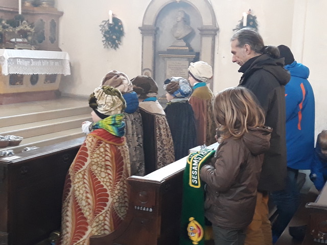 Bei sehr winterlichen Bedingungen machten sich unsere Sternsinger in den letzten Tagen auf den Weg durch unsere Stadt und schrieben mit Kreide an die Türen von Häusern und Wohnungen die alte Segensformel „Christus mansionem benedicat – Christus segne dieses Haus“ an. Ergänzt werden die drei Buchstaben C+M+B um die Jahreszahl. In diesem Jahr sieht das zum Beispiel dann so aus: 20 C+M+B 19. Und das Ergebnis unserer Sternsinger war stattlich, stolze 7.719 Euro füllten die Spendenbox.