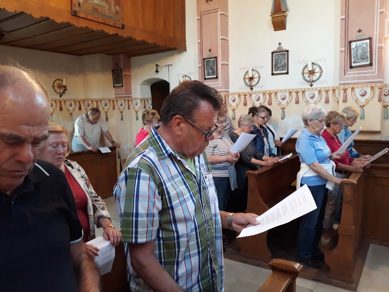 In Webling wurden die Bittgänger mit Glockengeläut empfangen. In der heimeligen Kirche St. Leonhard hatten sich bereits mehrere Damen und Herren versammelt, und so feierte Wolfgang Müller mit einem vollen Gotteshaus eine Andacht. Sowohl die Litaneien als auch die Fürbitten und die gemeinsam gesungenen Lieder brachten den innigen Dank für die Schöpfung, aber auch die Sorge über deren gesicherten Fortbestand eindringlich zum Ausdruck. Gestärkt mit dem Segen Gottes und dem wunderschönen Schlusslied „Maria, dich lieben“ machten sich die Beterinnen und Beter sichtlich heiter und zufrieden auf den Heimweg. Und alle kamen trocken zu Hause an!