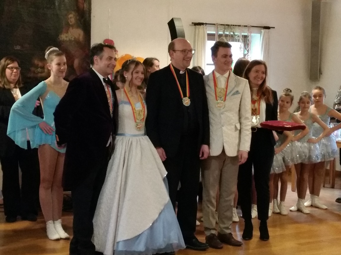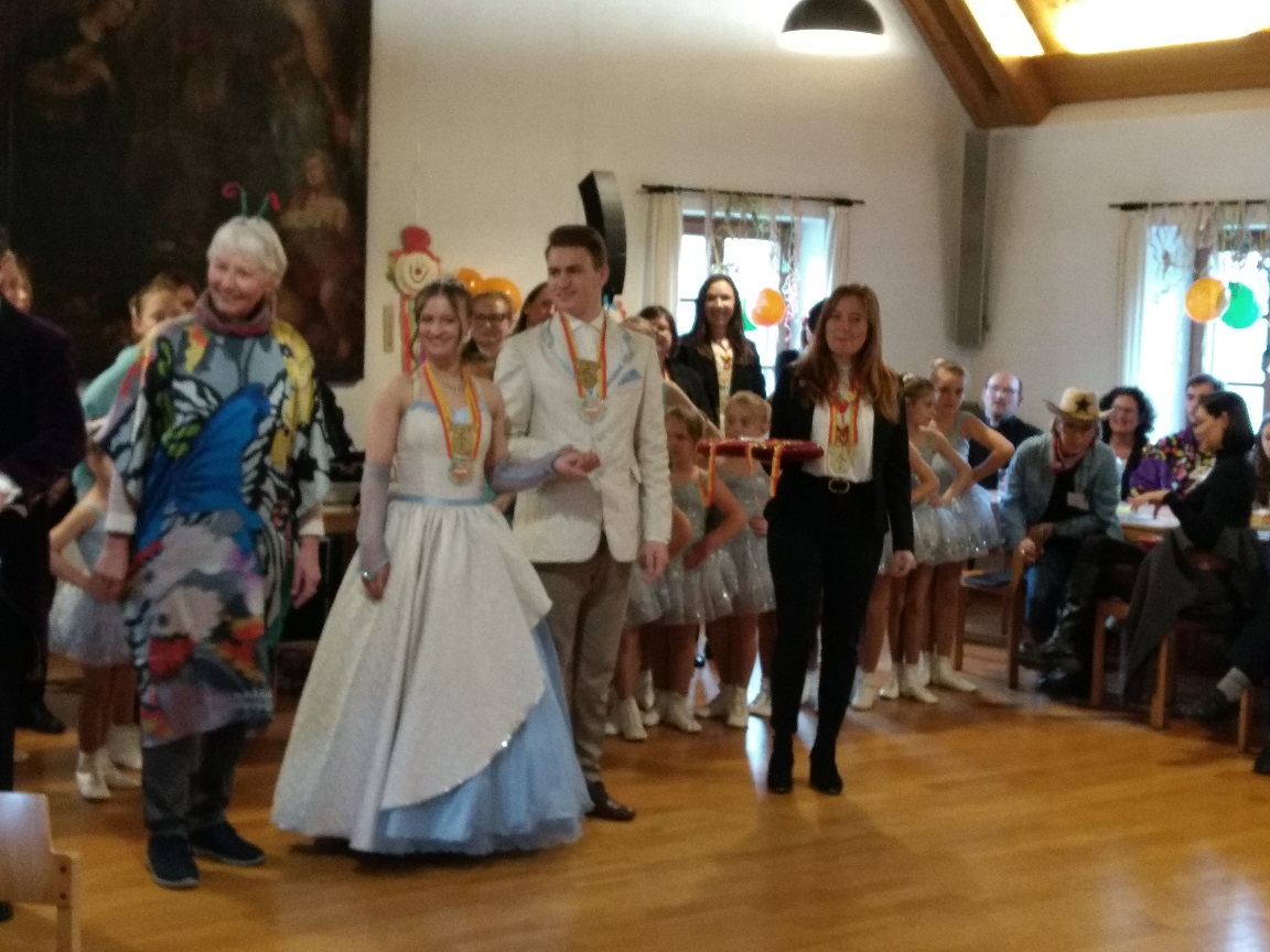 Zu Aprikosen - und Vanillekrapfen traf sich die Faschingsgesellschaft zu einen lustigen Nachmittag und konnte alsbald die Faschingsgarde der Jugend begrüßen: Das Prinzenpaar Victoria I. und Luca I. sowie die Tanzgruppen der "Mini-Minis" , der Jugendgarde und der "Black Pearls". Durch den Ministrantendienst sind einige davon auch kirchlich dem Pfarrverband verbunden. Die Darbietungen verzauberten sodann die anwesende Feierschar und wurden durch den Walzer des Prinzenpaares nach der Musik "Hold My Hand" von Lady Gaga gekrönt. Ebenso wurden mit einem Orden die Kirchenpflegerin Bärbel Sailer für ihren unermüdlichen Einsatz nicht nur in der Kirchenverwaltung sondern an allen möglichen "Fronten" in der Mitterndorfer Kirche ausgezeichnet sowie auch Pfarrer Dr.Benjamin Gnan.