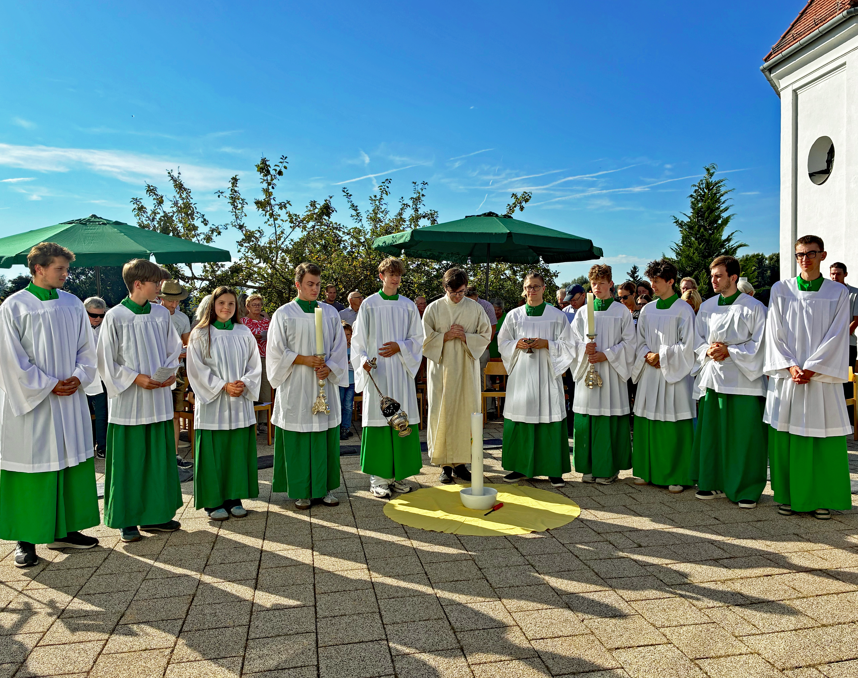 Zuvor fand am Pfarrhausvorplatz unter strahlendem Sonnenschein ein Familiengottesdienst, gestaltet von Pastoralassistent Christopher Purschke und Damen des PGR mit Gitarrenbegleitung statt. Mit einer großen Ministrantenschar fanden sich auch mehrere ganz junge Gläubige zusammen mit ihren Eltern ein und erlebten eine lebendige Andacht inklusive Schatzkiste. Alsdann folgten zahlreiche Gäste der Einladung und der Gemeindebereich verwandelte sich in einem lebendigen, quirligen Treffpunkt für Jung und Alt. Alle Generationen waren vertreten und feierten gemeinsam in harmonischer Atmosphäre. Für das leibliche Wohl war bestens gesorgt: Ein Foodtruck begeisterte mit kreativen Pommes-Variationen, Eiskaffee sowie einen spritzigen Aperol kamen ebenfalls gut beim Publikum an. Als krönender Abschluß wartete ein kühles Eis auf die Besucher -bei den warmen Temperaturen ein besonders beliebter Genuss.
