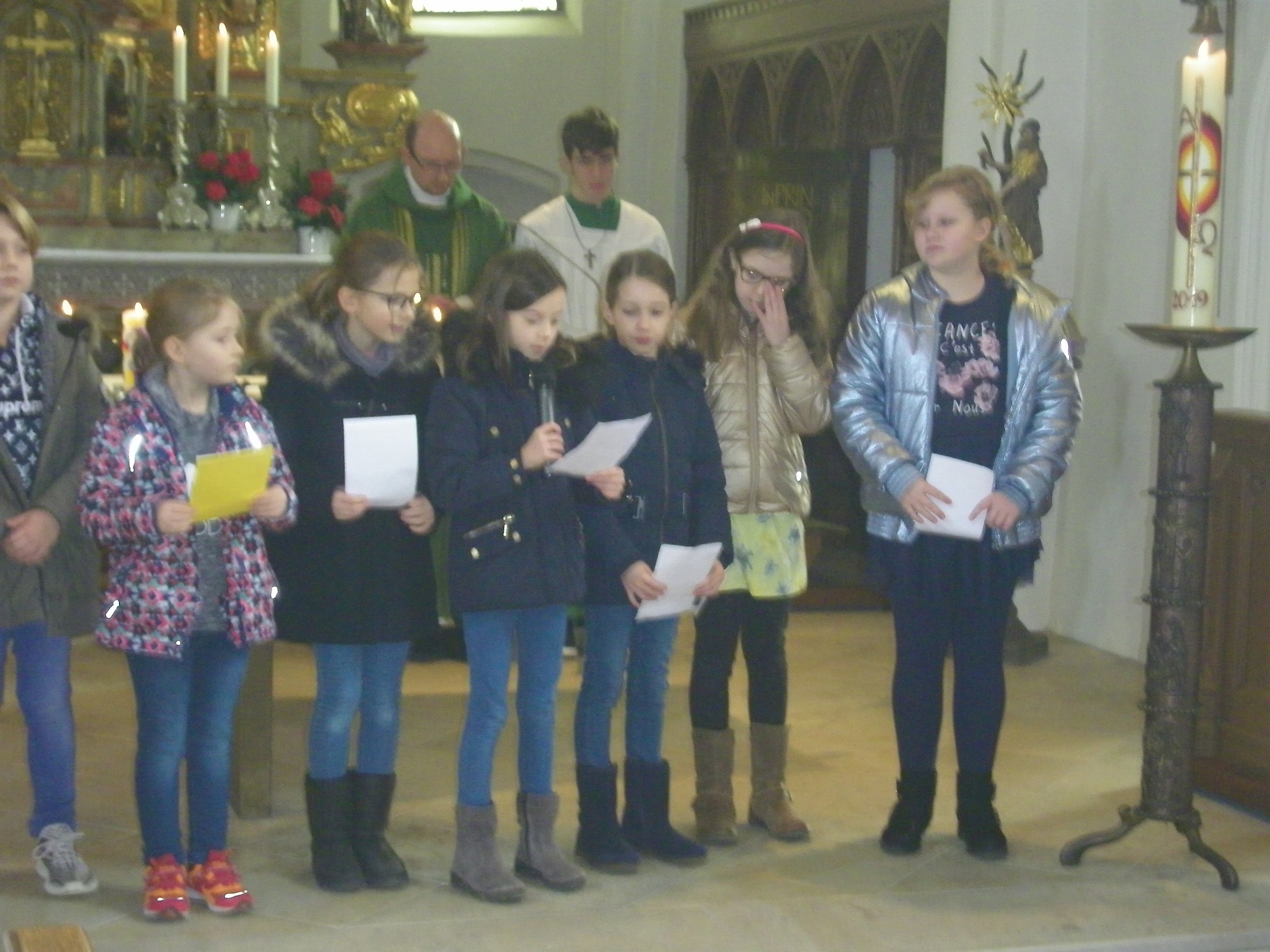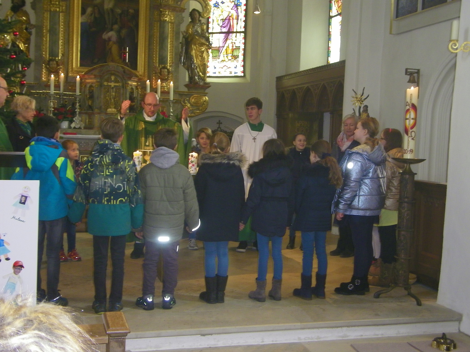 In der Sonntagsfeier beteiligten sie sich in den Kyrie-Rufen und den Fürbitten. Ebenso präsentierten sie das Lied "Komm und segne uns", welches das Motto widerspiegeln soll. Diese jungen Menschen sind von Gott gesegnet: in ihrem Leben, mit ihren Familien. Gleichwohl sollen sie auch selbst künftig für ihre Mitmenschen in ihrem Tun ein Segen sein.