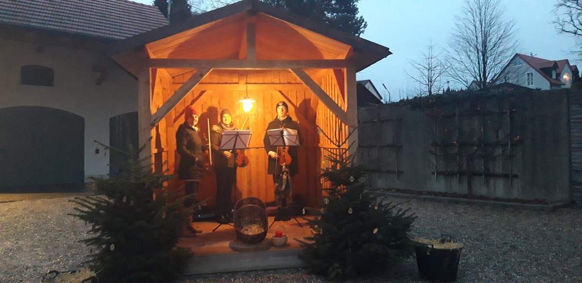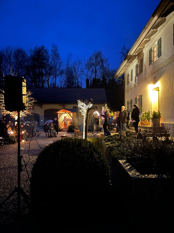 Das Wetter machte nicht so recht mit, aber trotzdem halfen alle Ober- und Unterbacherner unter der Leitung von Ingrid Scheingraber zusammen und so wurde im Freien eine wunderschöne Kinderchristmette gefeiert.