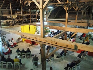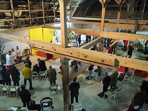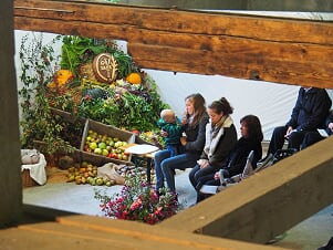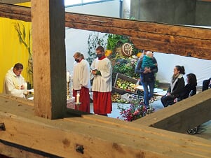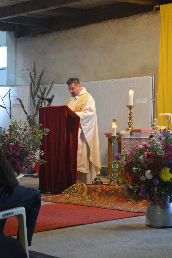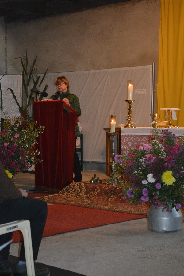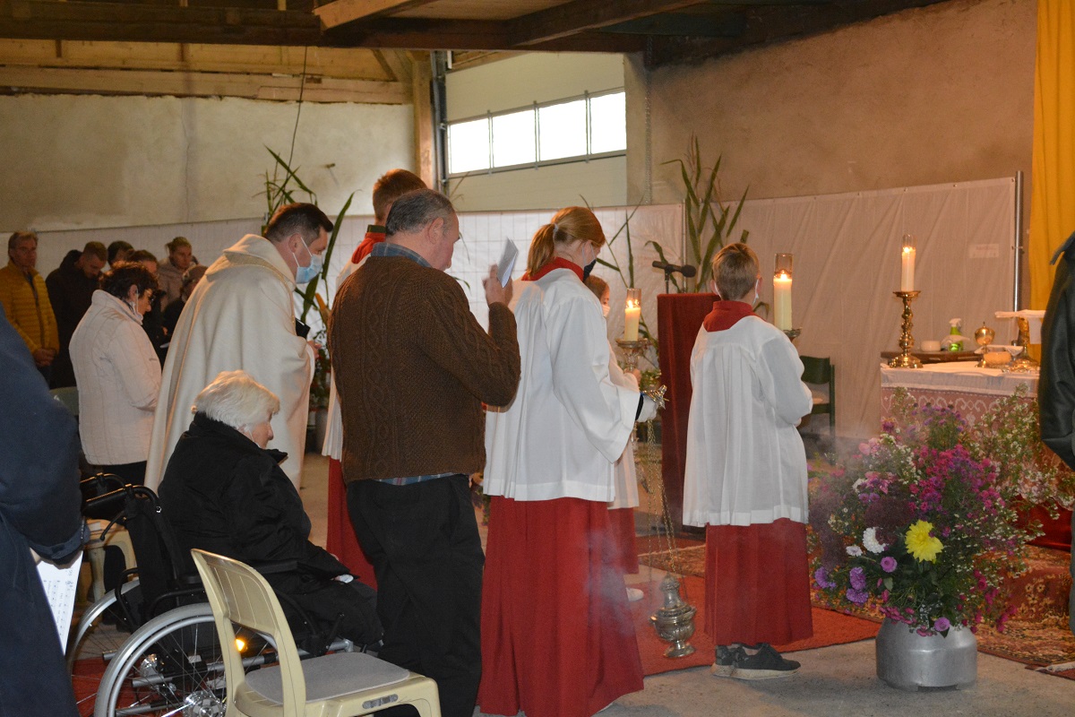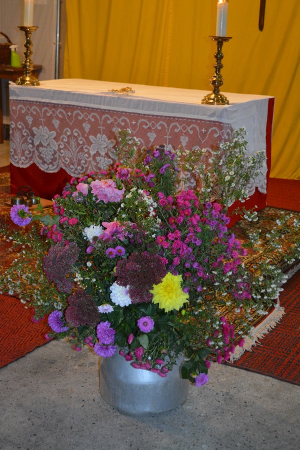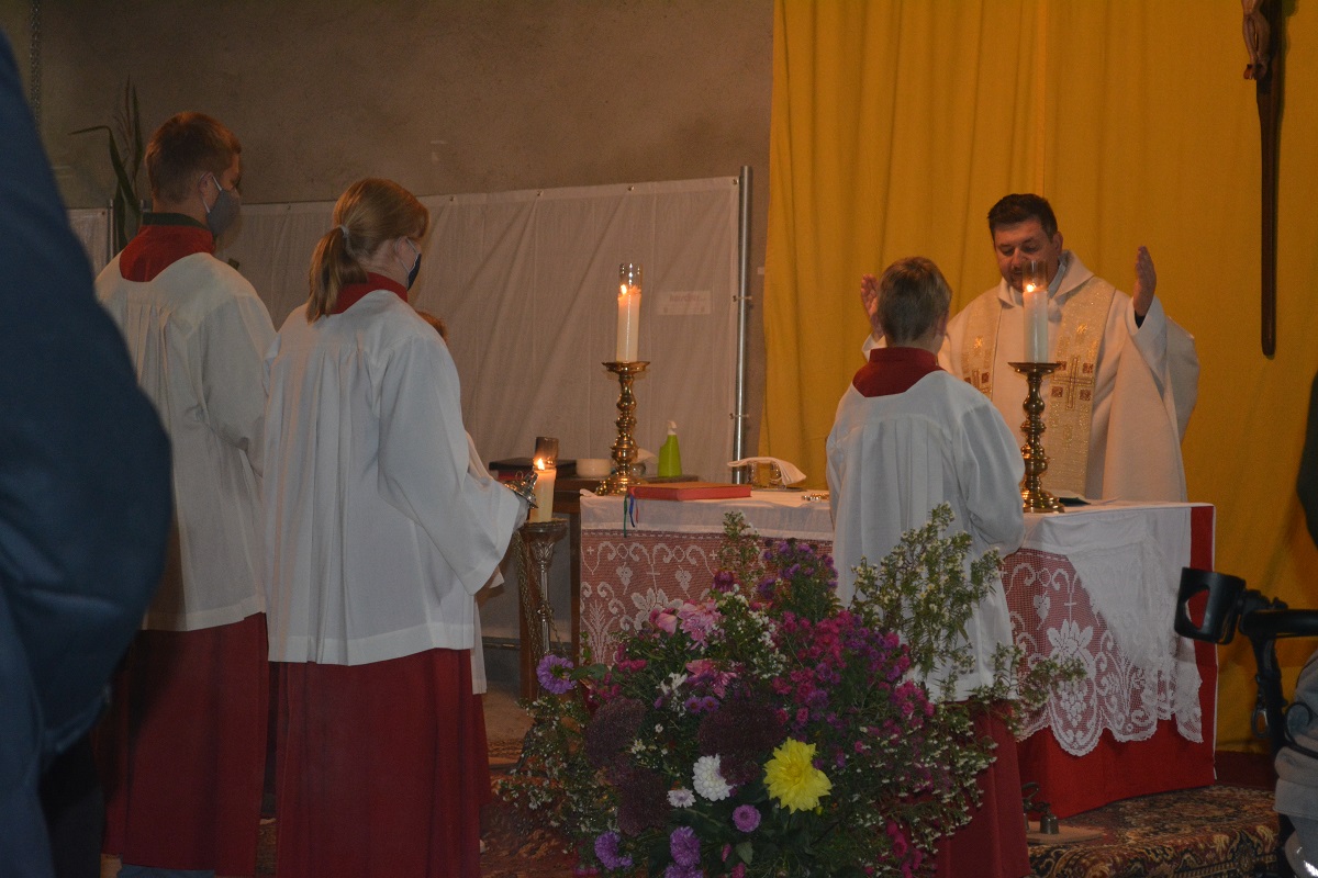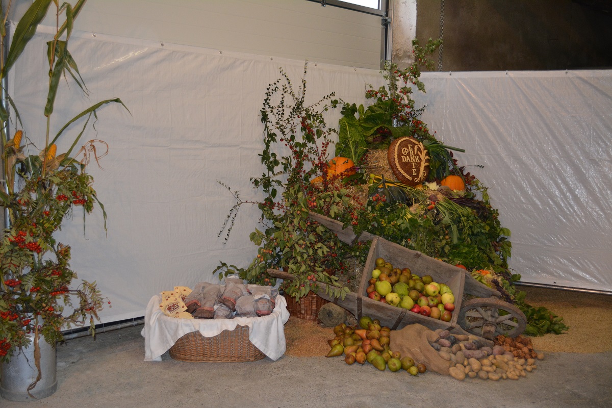 Mehr als die Hälfte der Gläubigen hätte man wieder heim schicken müssen, da in der Kirche derzeit nur begrenzt Plätze zur Verfügung stehen. Der große Stadel war sehr schön hergerichtet und dekoriert worden und vor allem der Erntedank-Altar war ein Blickfang, der in dem landwirtschaftlichen Gebäude erst richtig zur Geltung kam. Pastoralreferentin Susanne Deininger freute sich sehr, dass auch wieder mehr jüngere Kirchenbesucher und Kinder zum Gottesdienst gekommen waren. Nach der Eucharistiefeier wurden vor dem Stadel unter Beachtung der aktuellen Hygienevorschriften bereits verpackte Minibrote gegen eine Spende ausgegeben. So kamen 405 Euro zusammen.
