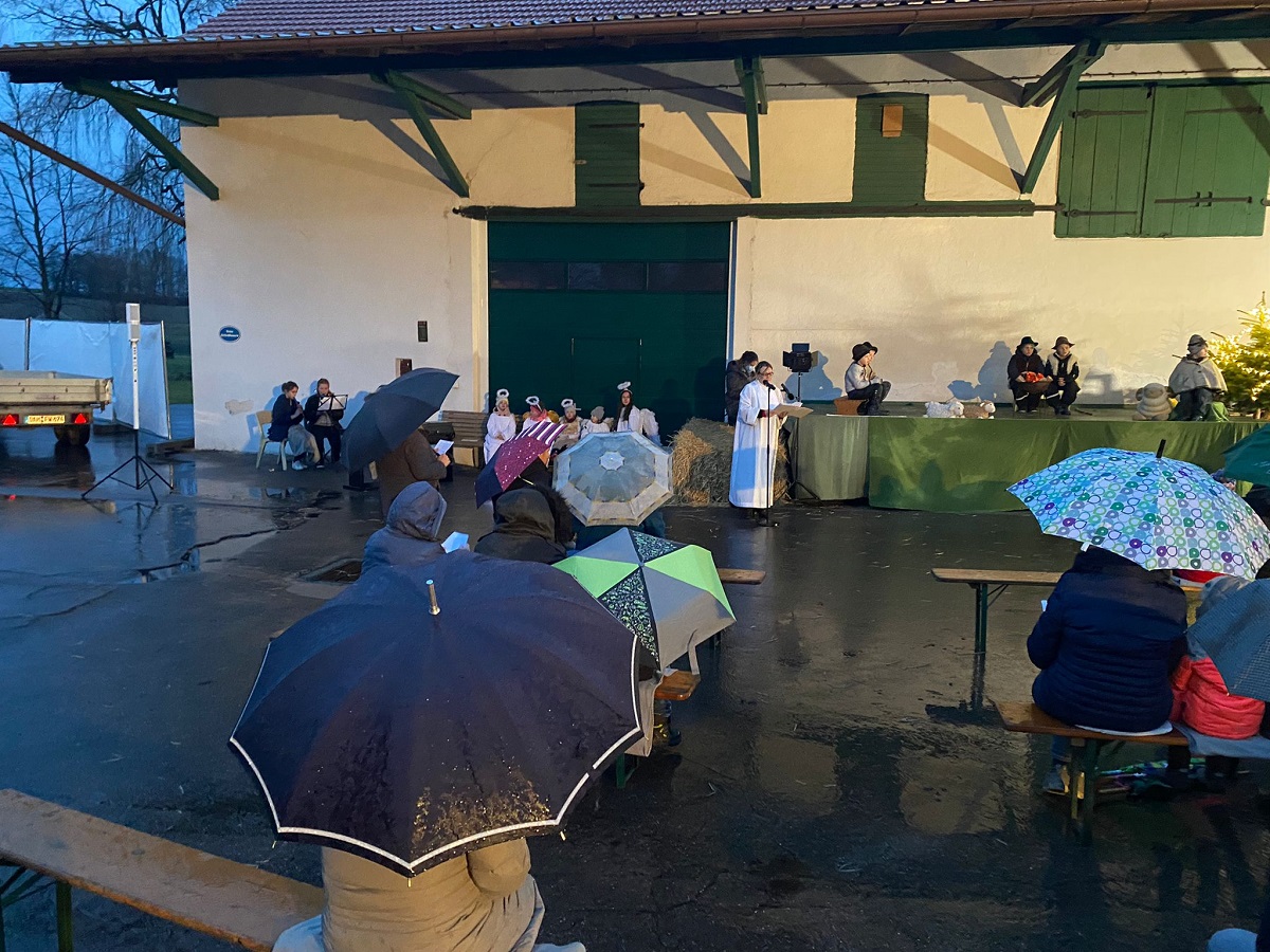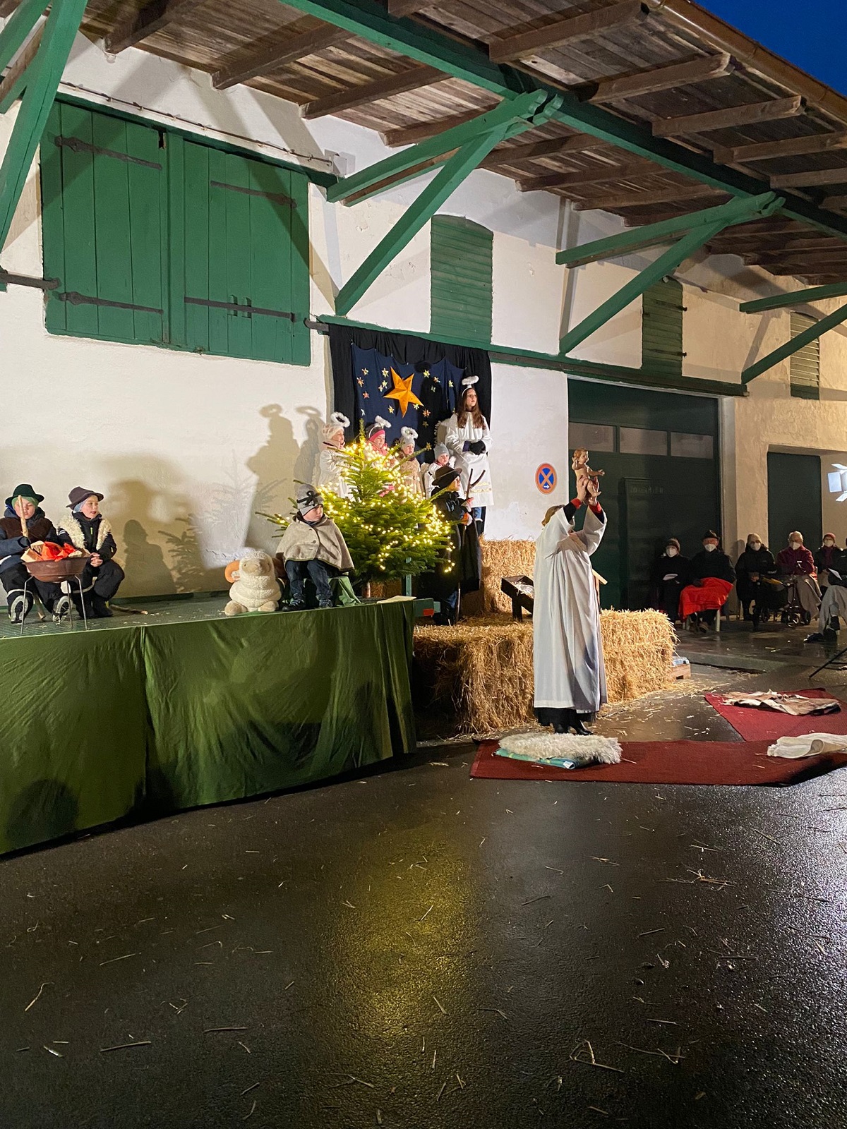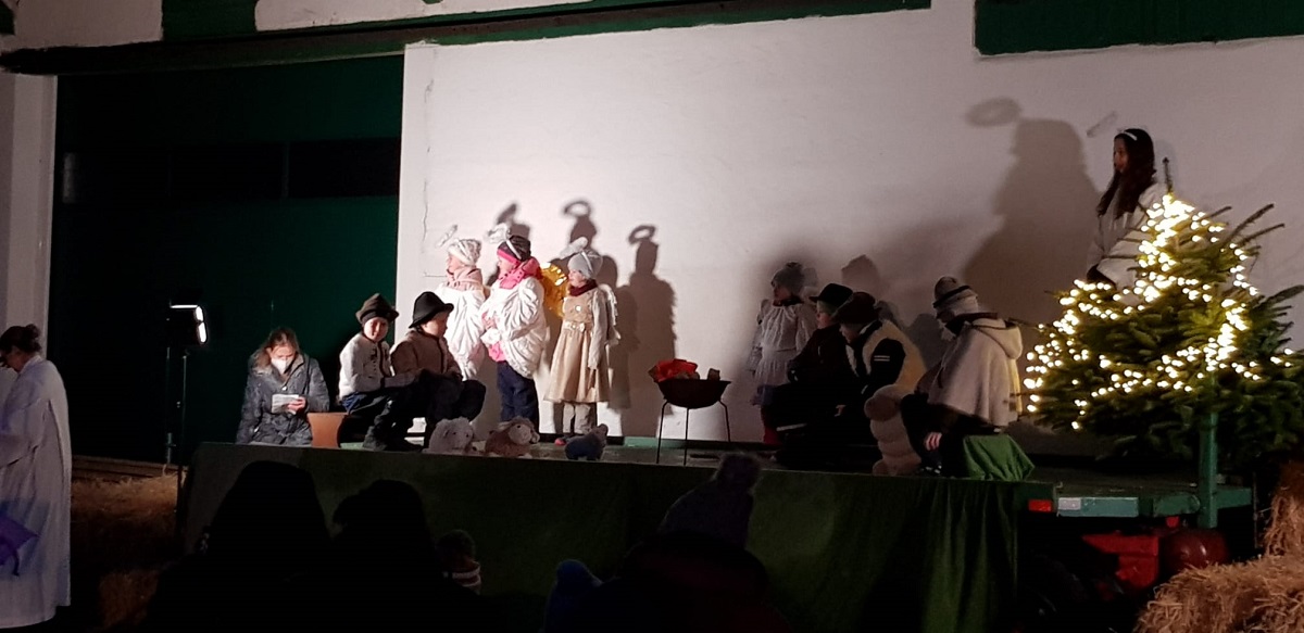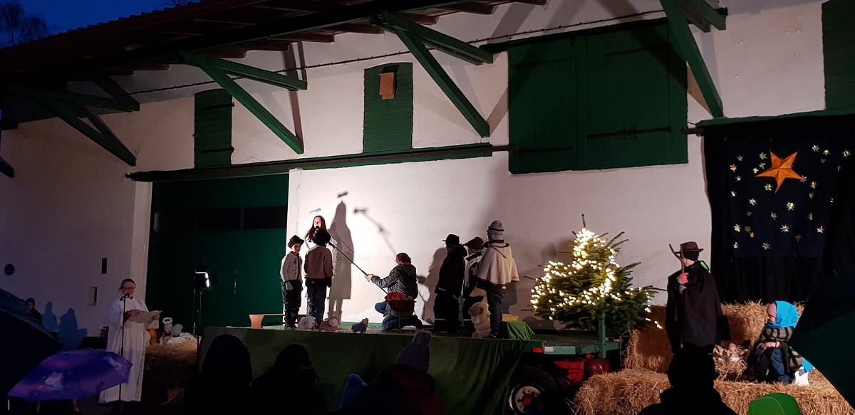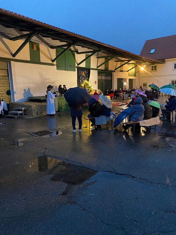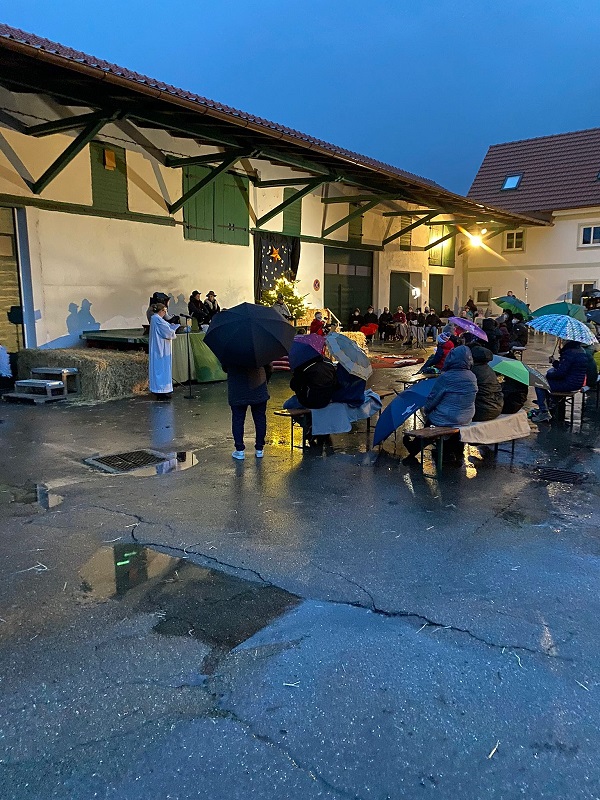 Die Familie Metz stellte Ihren Hof zur Verfügung und das bewährte Gottesdienst-Team richtete unter dem Vordach des Stadels eine schöne Bühne her, schaffte Sitzgelegenheiten mit Kuscheldecken und wärmenden Unterlagen und sorgte wie gewohnt für einen reibungslosen und den aktuellen Hygienemaßnahmen gerechten Ablauf.