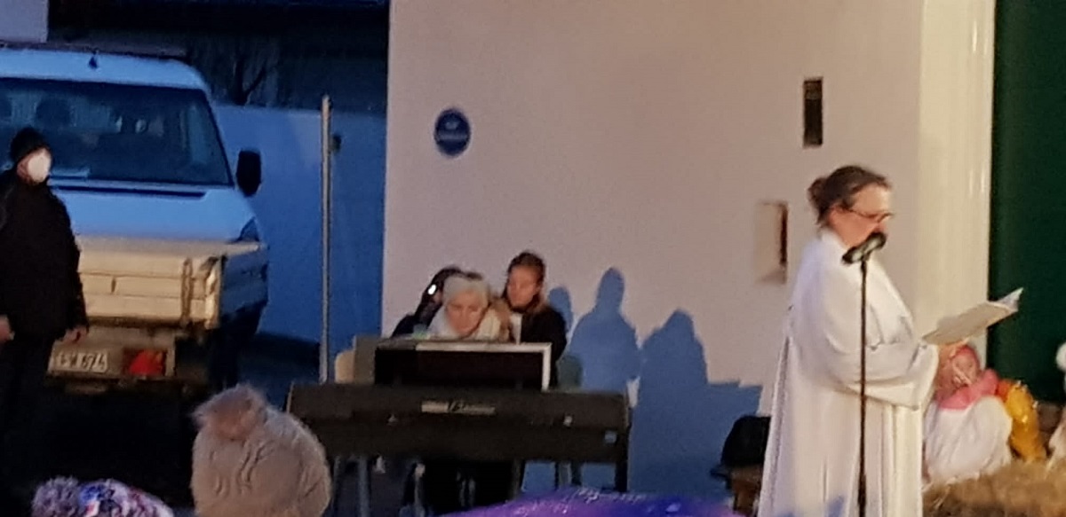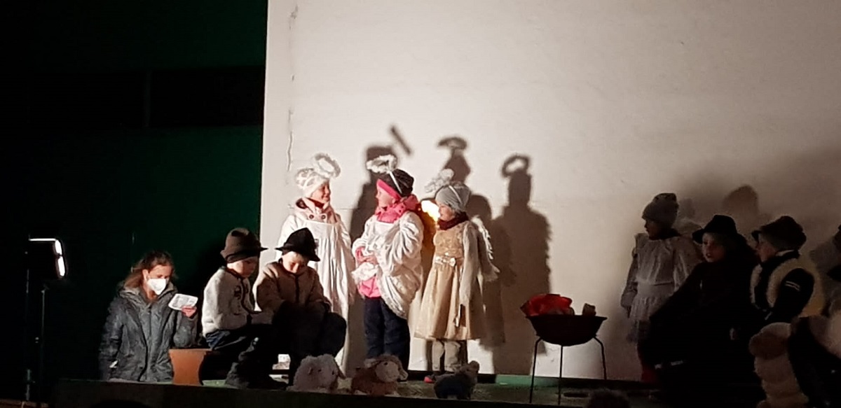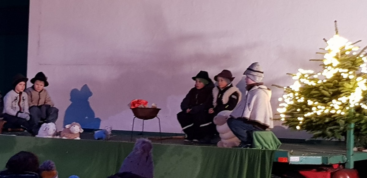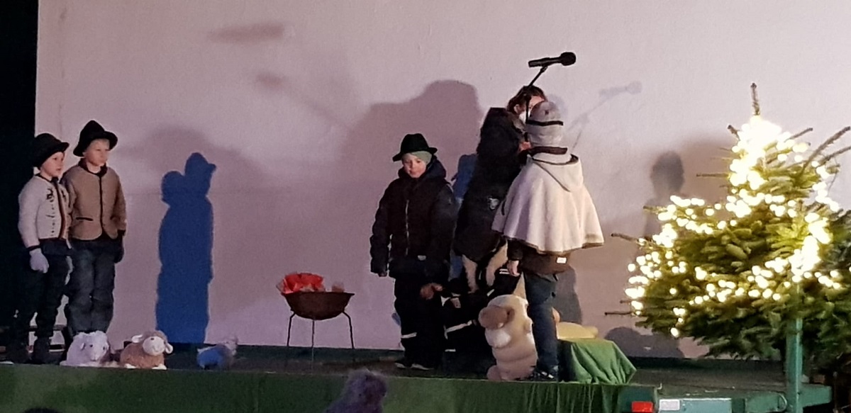 Musikalisch gestaltet wurde die Kinderchristmette von Magdalena Nauderer auf der Orgel, sowie Antonia Glas und Magdalena Fottner auf der Flöte. Der Wind und die Beleuchtung machten es der Orgelspielerin nicht leicht, doch Hilfe kam durch helfende Hände im Hintergrund und eine Handykamera beleuchtete die Noten.