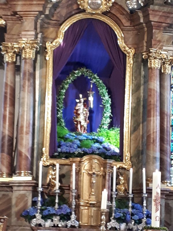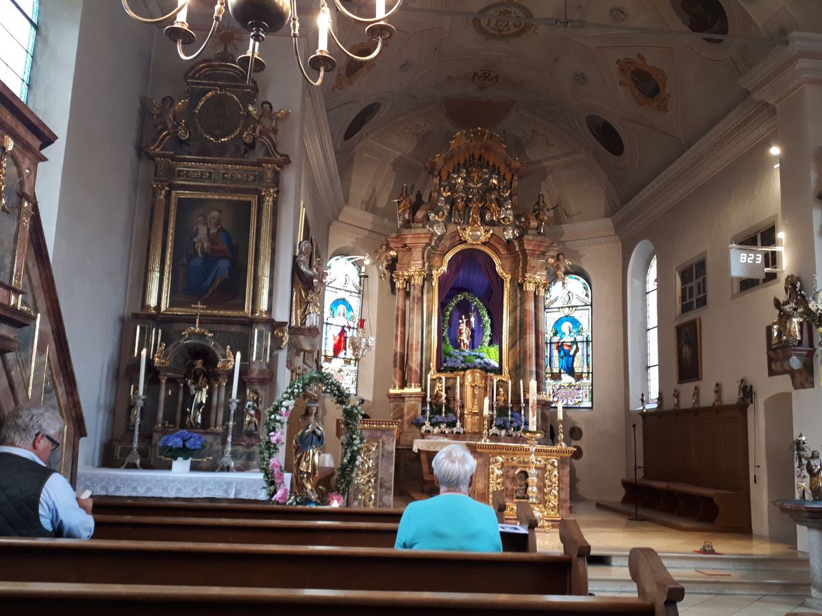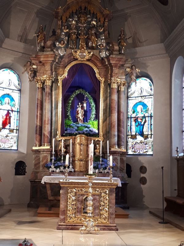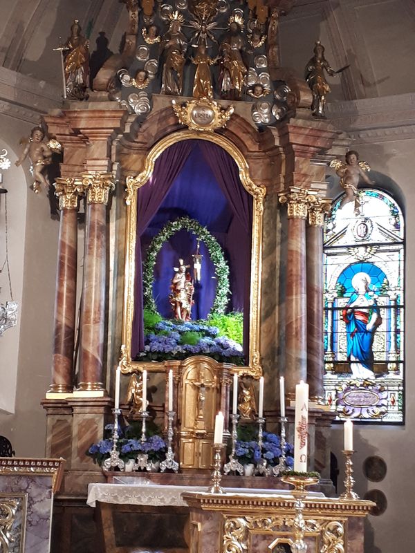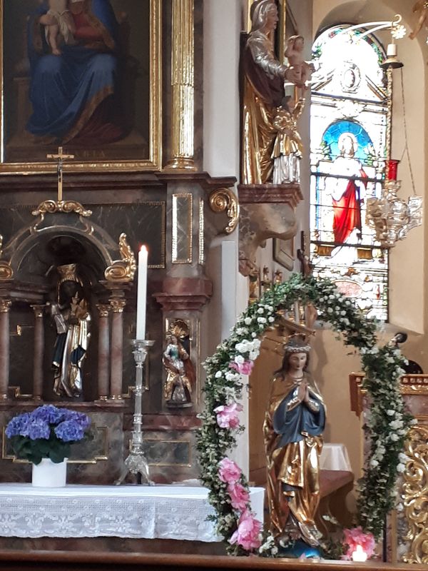 Auch in diesem Mai ist der Altar mit dem Auferstandenen wunderbar anzuschauen. Bei den diesjährig sehr gut besuchten Maiandachten in Pellheim kann man sich an dem schön dekorierten Altar, den Seitenaltären sowie der Mutter-Gottes-Figur gar nicht satt sehen.