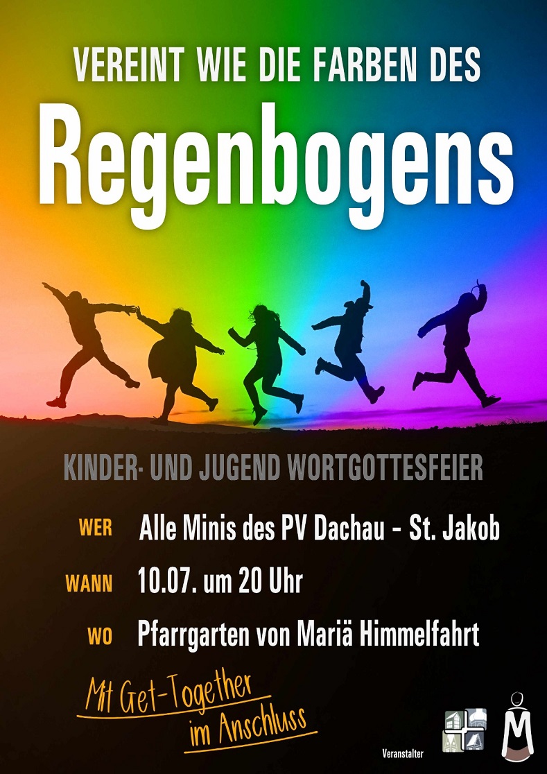 KINDER- UND-JUGEND-WORTGOTTESFEIER mit allen Minis des PV Dachau-St. Jakob am Samstag, 10.07.2021, um 20.00 Uhr im Pfarrgarten von Mariä Himmelfahrt. Mit Get-Together im Anschluss!